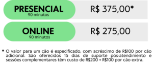 Atenção, antes de agendar, é necessário o preenchimento de um formulário que tem por objetivo conhecer melhor você, o seu dog e entender a dinâmica da relação entre vocês, bem como identificar possíveis pontos que precisarão ser trabalhados; tudo com o objetivo de otimizar o nosso tempo de consulta, preparar todo o material necessário para o seu caso e fazer valer cada centavo investido na educação do seu cão.